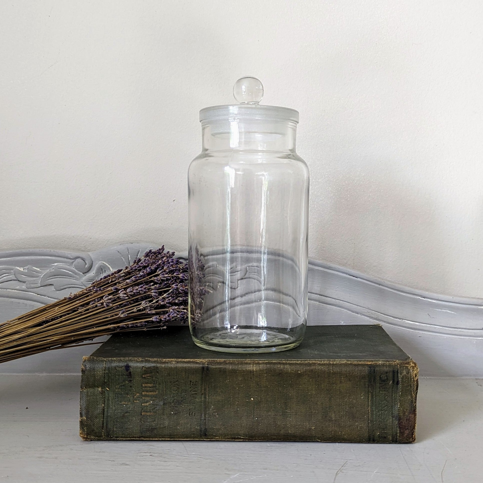 Discover the timeless elegance of these classic vintage glass apothecary jars. Perfect for adding a touch of nostalgia to your home décor or organising your kitchen pantry.